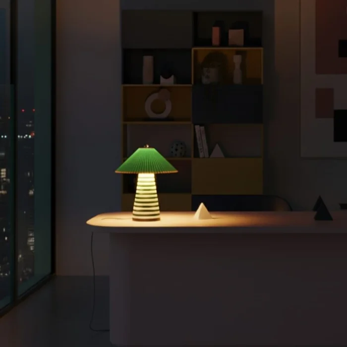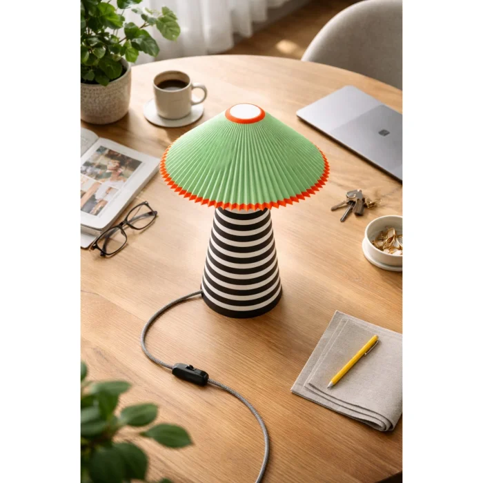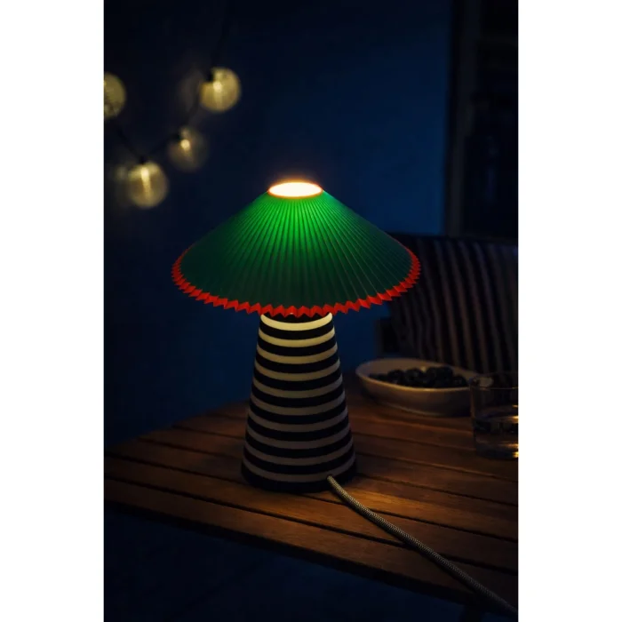 Material: PLA (Polylactic Acid) is an organic plastic produced from products such as corn starch, sugar cane and sugar beet. Lamp Holder Type: E27 Shipped with Max 4 W LED Bulb. (A max 4.5 cm diameter bulb is used.) (It is not recommended to use incandescent light bulbs.) Cable Length: 170 cm (braided fabric cable) There may be slight variations in colors due to the lights used in the photoshoot. Height: 30 cm Width: 24 cm