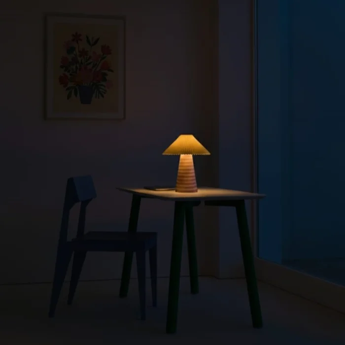 Material: PLA (Polylactic Acid) is an organic plastic produced from products such as corn starch, sugar cane and sugar beet. Lamp Holder Type: E27 Shipped with Max 4 W LED Bulb. (A max 4.5 cm diameter bulb is used.) (It is not recommended to use incandescent light bulbs.) Cable Length: 170 cm (braided fabric cable) There may be slight variations in colors due to the lights used in the photoshoot. Height: 30 cm Width: 24 cm