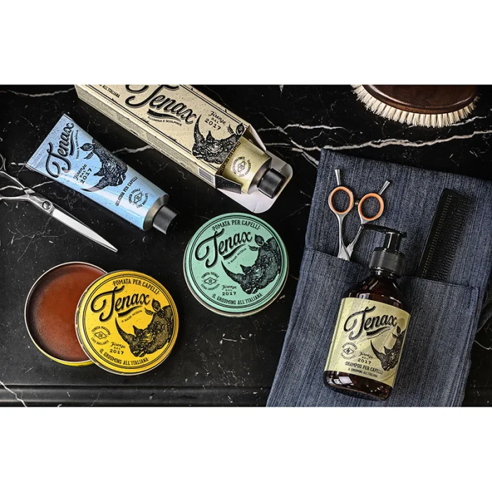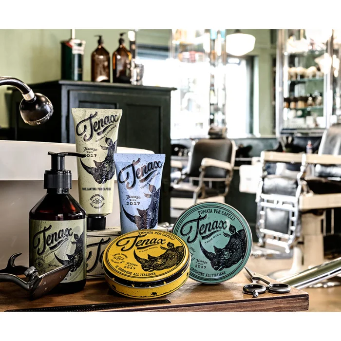 Tenax hair pomade is a water-based wax that guarantees a firm hold. Its composition makes your hair bright and firm, but so at the same time. You can apply Tenax through dry or damp hair. It is easy to wash o . Fix your hairstyle:The perfect choice for a solid but not static hairstyling.