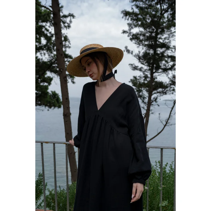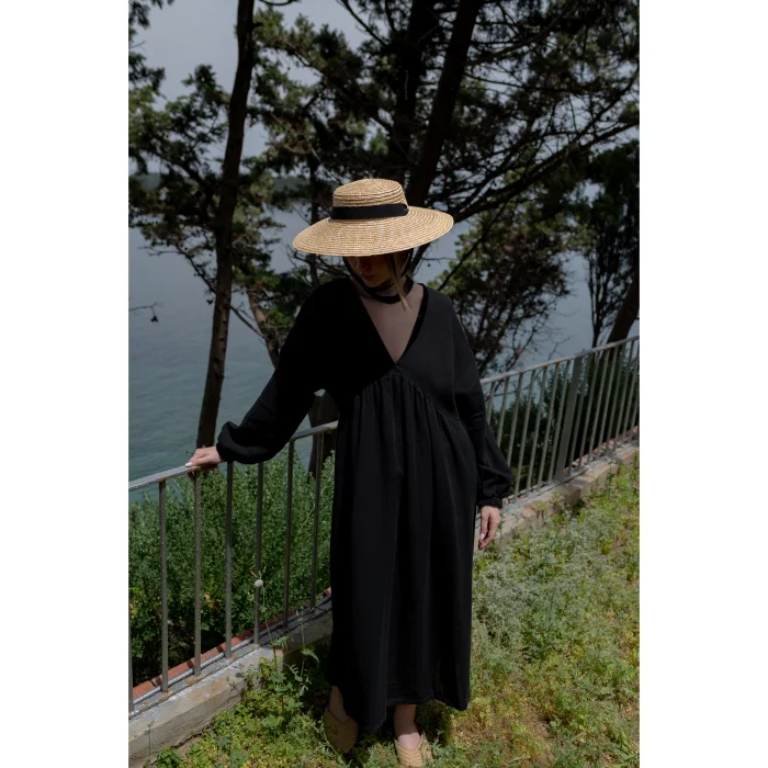 V-neck bohemian dress is balloon sleeve and the ankle part is elastic.