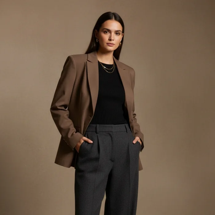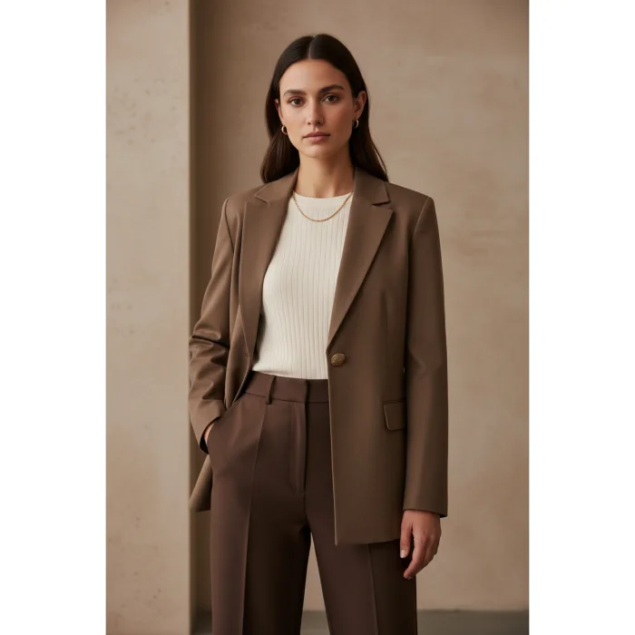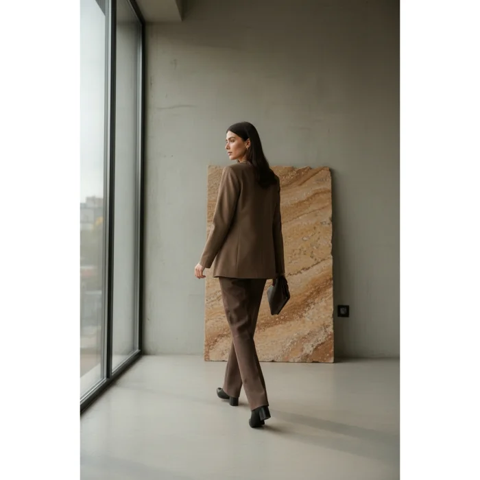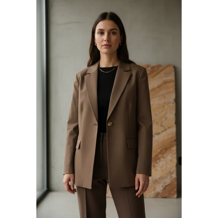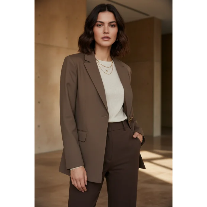 The Olive is a timeless and sophisticated blazer model with its woven fabric in brown-green tones. Thanks to its solid structure, it maintains its form and provides comfortable use all day long. It can be easily used with jeans in daily combinations and with fabric trousers in more classic styles.
