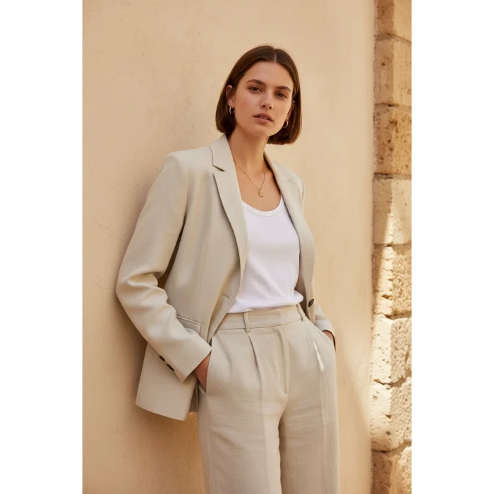 The Riviera is designed as one of the most timeless pieces of summer wardrobes with its beige linen fabric. Thanks to its light and natural texture, it provides comfort all day long. With its minimal cut, it can be easily used in both daily and stylish combinations.