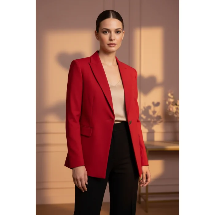 The Rouge adds an elegant and powerful interpretation to modern women's style with its lightly textured jacquard fabric and gold button details. While the mono collar form creates a simple and clear silhouette; Thanks to its regular pattern, it offers comfortable use all day long.