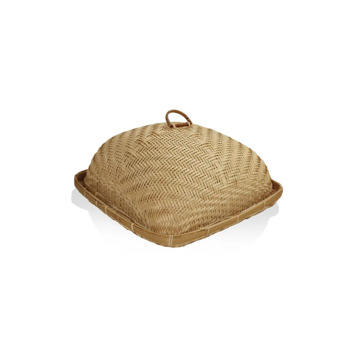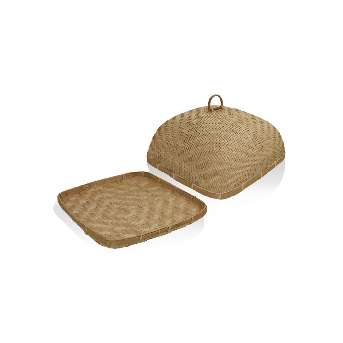 Tray with Bamboo Lid Product size: 40x40x21 cm Material: Bamboo Tray with bamboo lid with a natural and stylish design Such trays are frequently preferred in kitchens with their aesthetic appearance and practical use. It can also be used as a decorative object in kitchen decoration. Maintenance: It is recommended to clean with a slightly damp cloth.