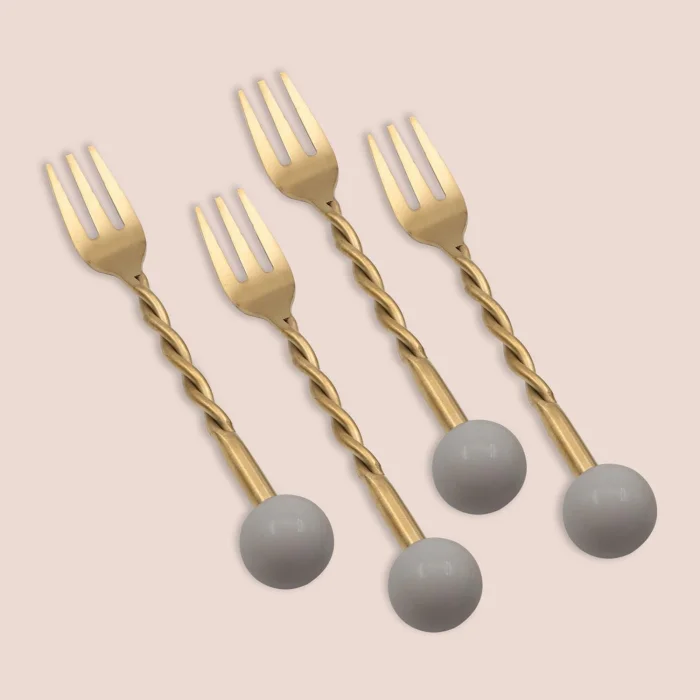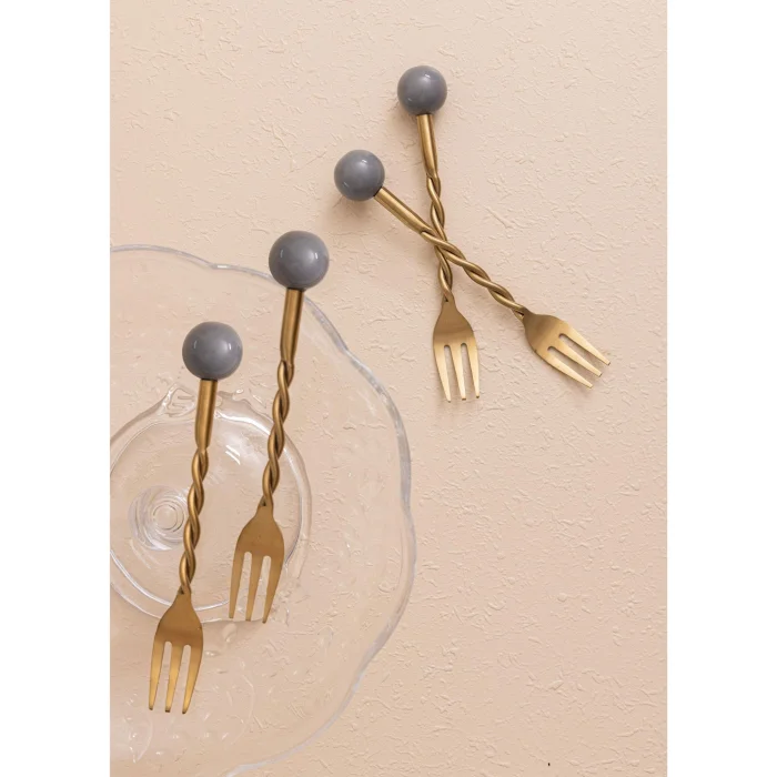 • Stylish and decorative cake fork set: With its matte gold PVD-coated steel body and green ceramic detailed handle design, it offers an aesthetic appearance in tea time, cake and dessert presentations.