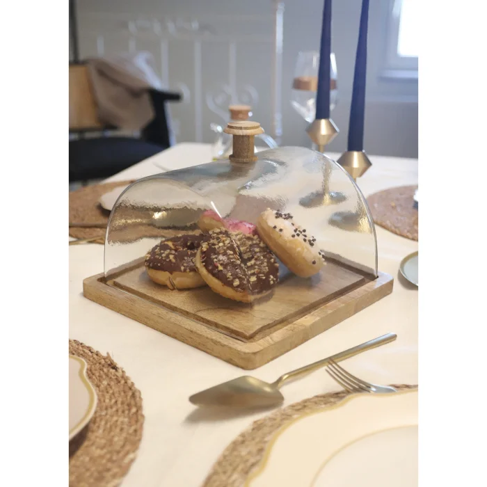 Madera Rectangular Cake Storage Fan Product dead: 18x24 cmYou can use it for a long time and add privilege to your presentationsIf you wish, you can use it in your decorative or presentationsOnly the glass part is suitable for washing in the dishwasher. Plate Material: Acacia Wood