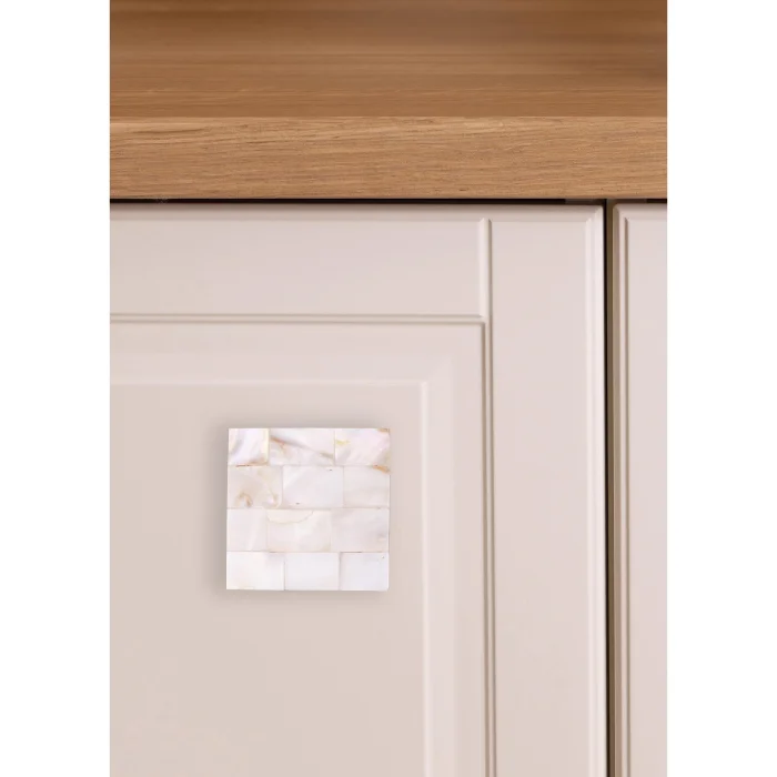 Standing out with the elegant sparkle of natural mother-of-pearl and its square design, this mother-of-pearl drawer and cabinet handle gives your furniture a romantic and sophisticated atmosphere. Thanks to its natural brightness that changes according to the light, it offers a striking appearance in any environment.