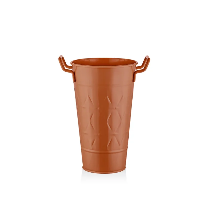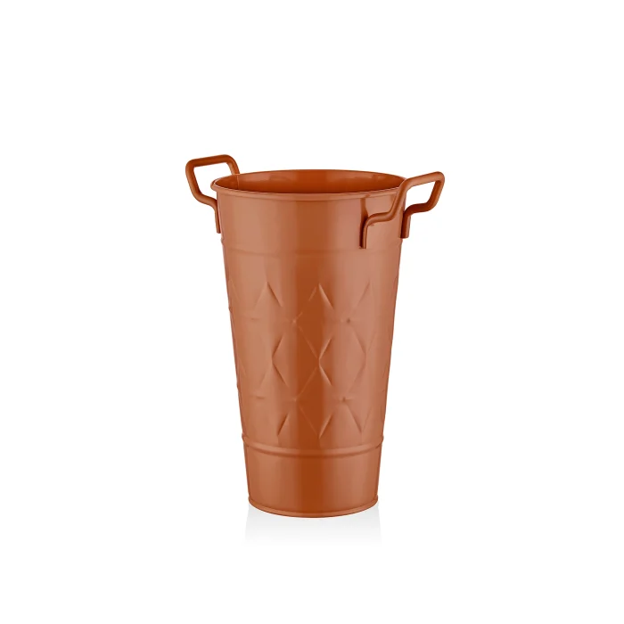 Stainless, stain-resistant galvanized vase suitable for indoor and outdoor use.