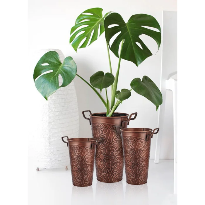 Internal and outdoor use, stainless, stain -induced galvanized vase.