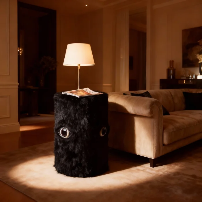 Product: The Eye Table - Black Fur Design Side Table