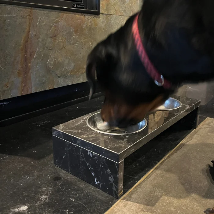 This specially designed Marble Food Container consists of 2 metal circular bowls and 1 Marble Stand.