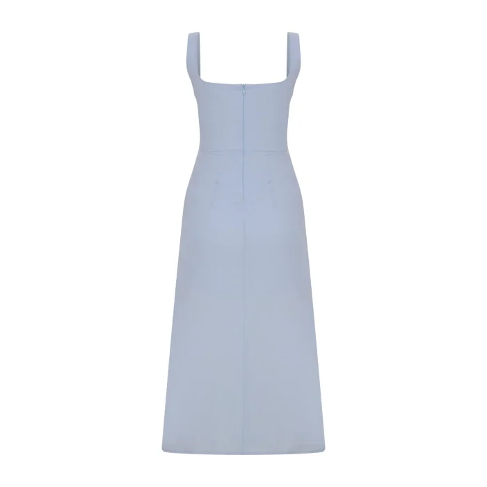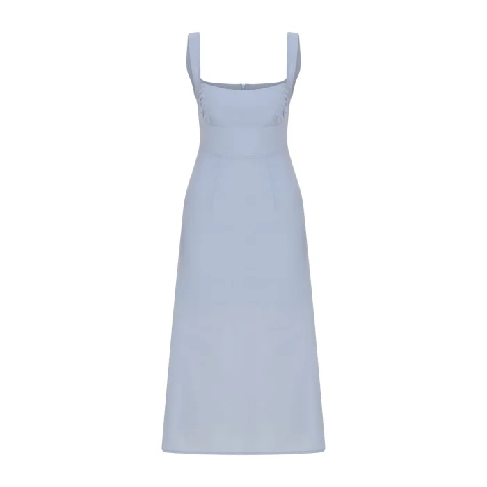 Square Neckline, Fitted and Lined Light Blue Midi Dress
