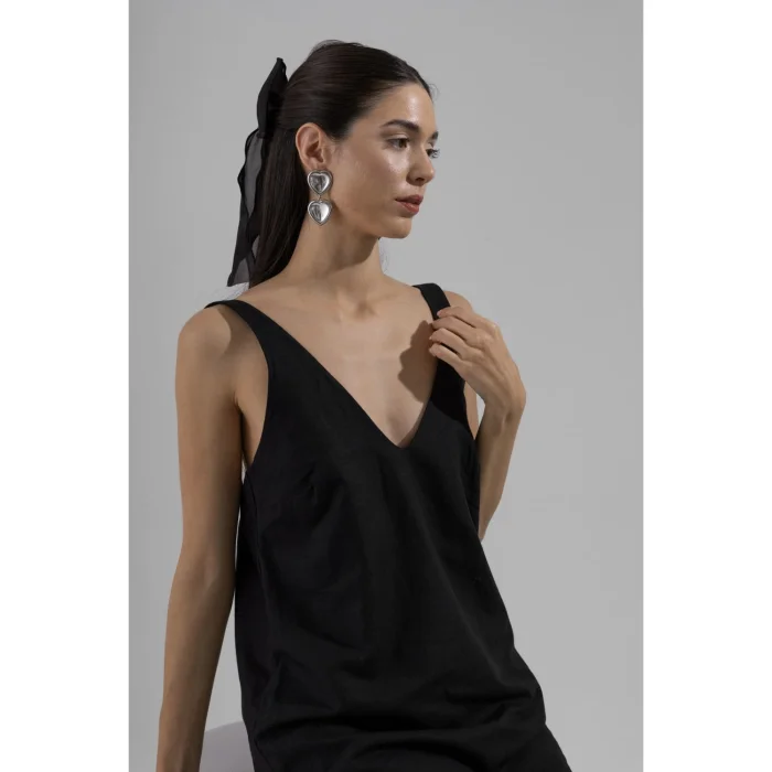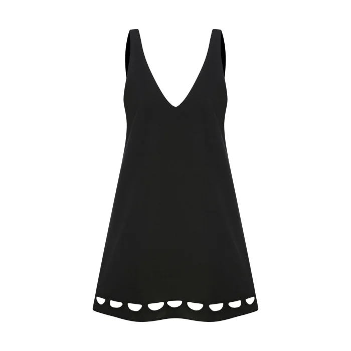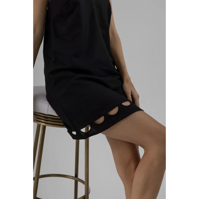 Black Mini Dress with V-Neck with Cut-Out Detail