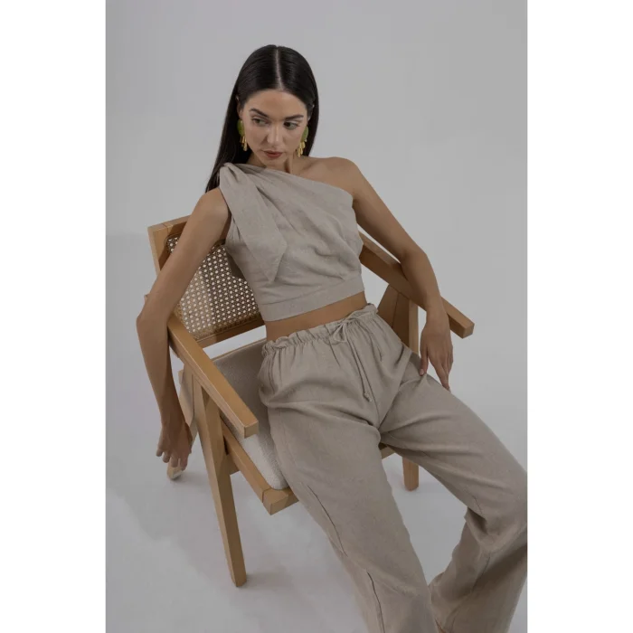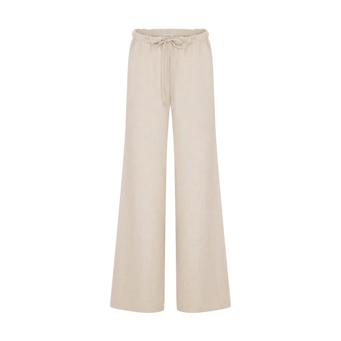 Elasticated, Natural Textured Linen Pants