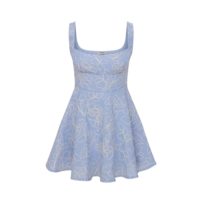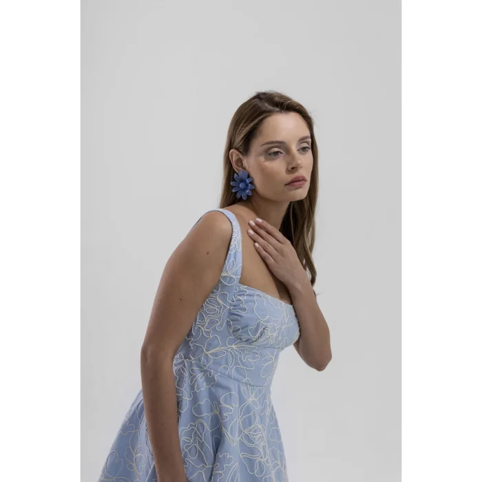 Blue Mini Dress with Floral Embroidery Detail and Six Lining Shorts