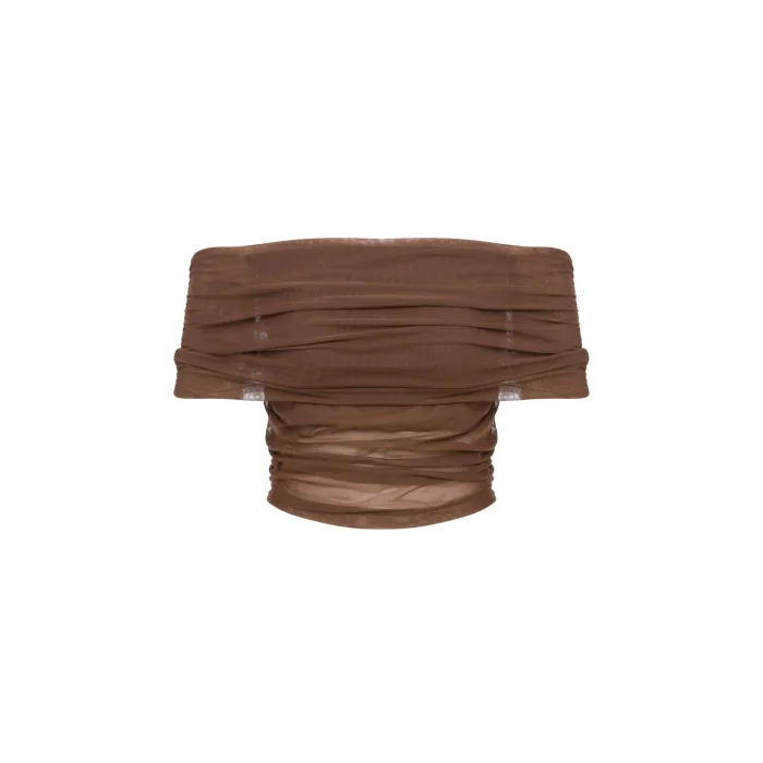 Off-Shoulder, Tulle Detailed, Lined Brown Ball