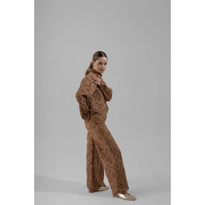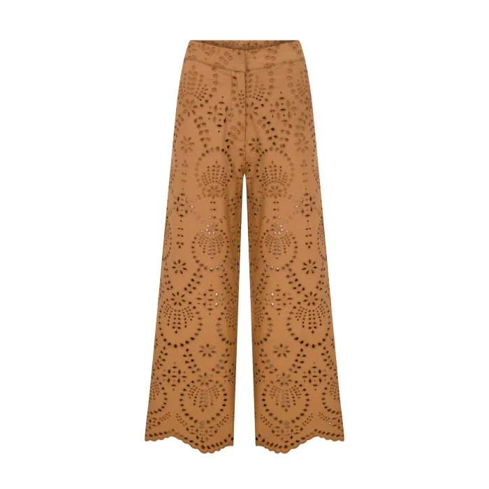 Embroidery Detailed, Wave Cut Leg, Shorts Lining, Brown Pants