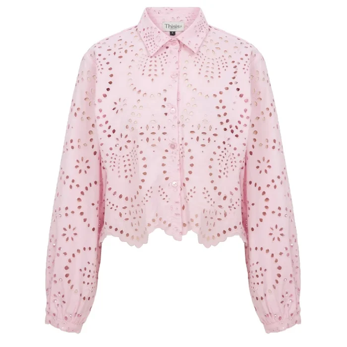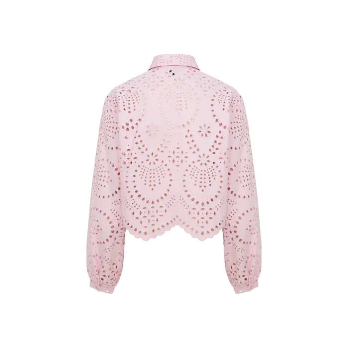 Embroidery Detailed, Skirt Section Wave Cut, Pink Shirt