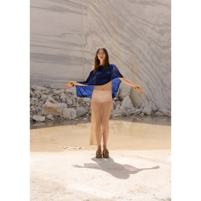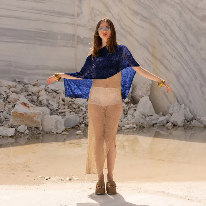 • It creates a dynamic and free silhouette thanks to its form that flows from the shoulder like a single piece.
