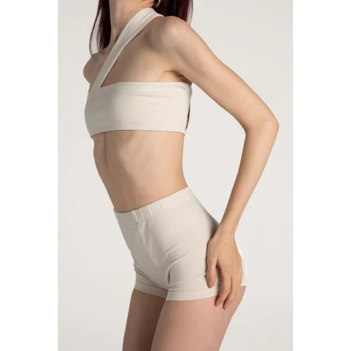 High waist, tight boyfriend boxers. It is thick-striped on white. It is pocketless. It is lycra, flexible.