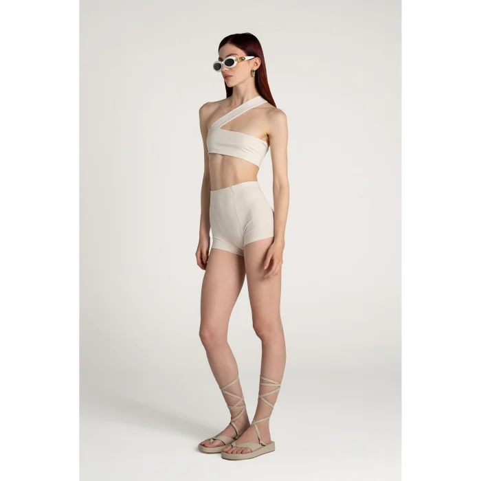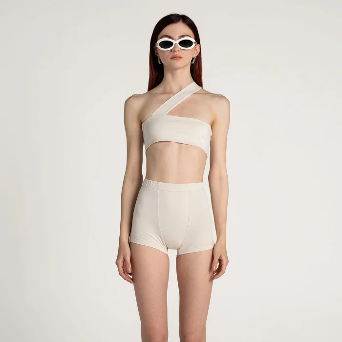Short bustier with one shoulder.