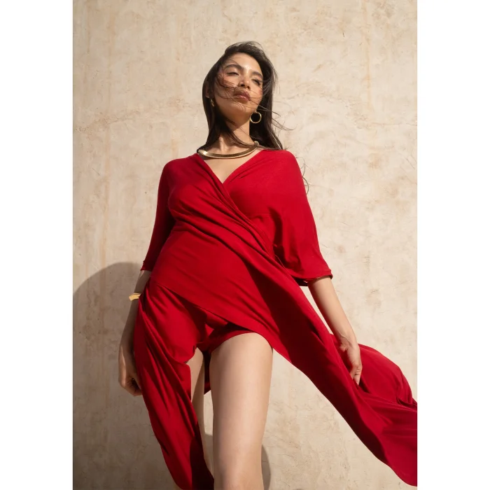 The Soul Dress consists of two pieces with a crossover design. Its pocketless and linerless construction offers an elegant and comfortable experience.