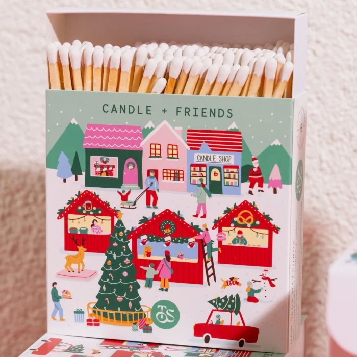 Enjoy lighting your favorite candles with these matches. Completing the design of our To's With Us x Candle+Friends collaboration, this matchbox contains approximately 125 10 cm long matchsticks. Thanks to these long matches, you can easily light your dwindling candles. The match tip color is red.
