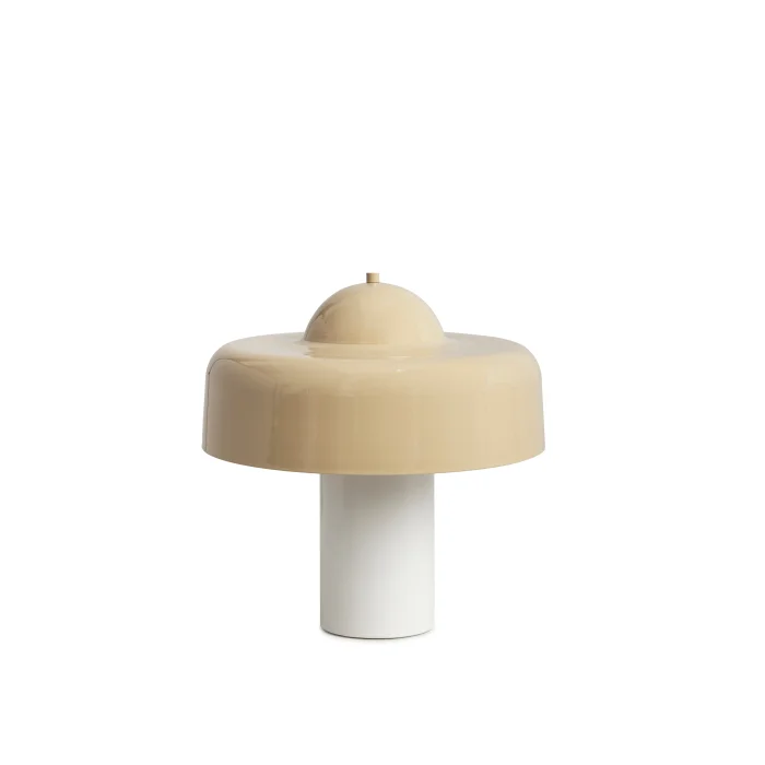 GLOSSY IVORY CREAM SHADE AND WHITE METAL BASE