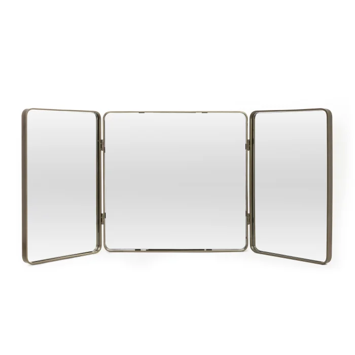 3 PIECES FOLDABLE MIRROR WITH HONEY COLORED METAL FRAME