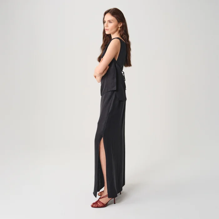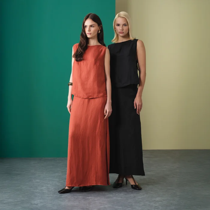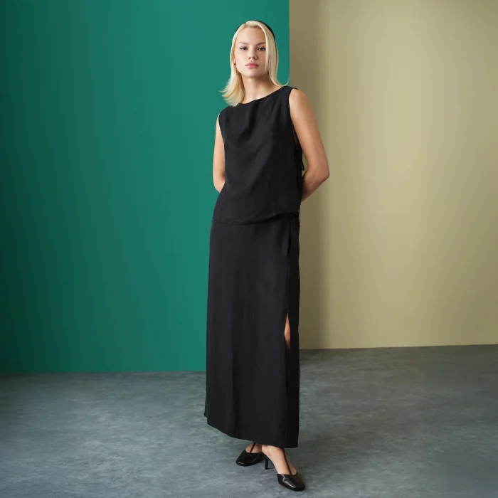Product: Rose Long Linen Cupro Skirt
