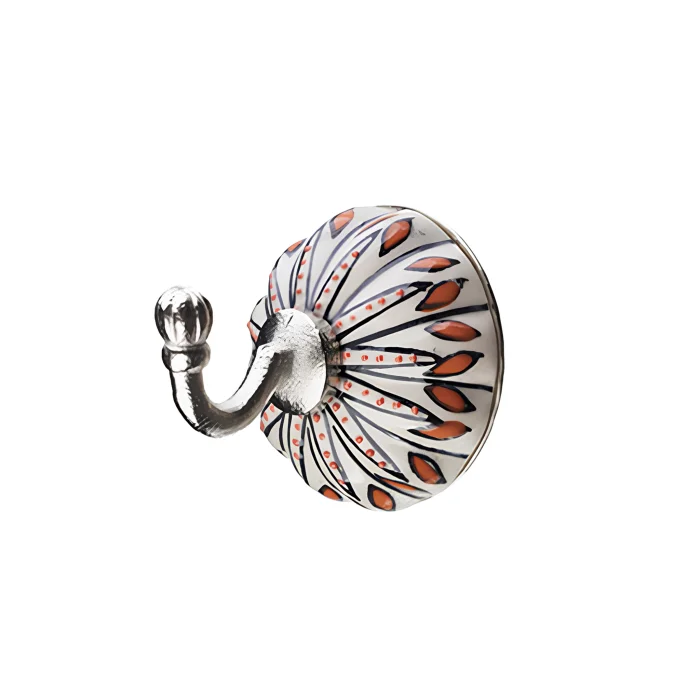Our semi-round, handmade wall hangers are practical and multifunctional. In the middle, the metal hook is placed, which has an antique appearance. Thanks to its oblique shape, jackets, coats, bags and towels sit safely on this beautiful wall shelf. The subtle sheen of the ceramic blends perfectly with the silver hook and even without a hanger offers a very decorative and classic wall design.