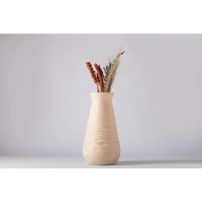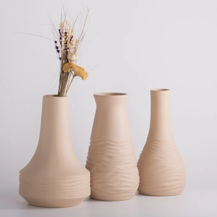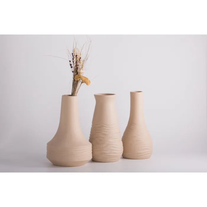 Crease Ceramic Vase Set, which will complete the elegance of your home or office, draws attention with its modern lines and quality workmanship. This special set, where you can feel elegance and mastery in every detail, can be used together or separately with its different sizes. With its smooth ceramic texture and simple form, it reflects the understanding of minimal and stylish decoration.