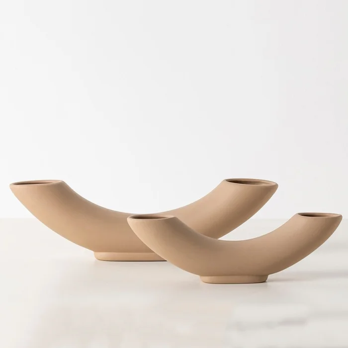 The Horn Ceramic Vase Set offers an aesthetic balance in your living spaces with its elegant curves and nature-inspired form.