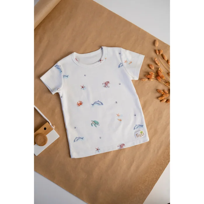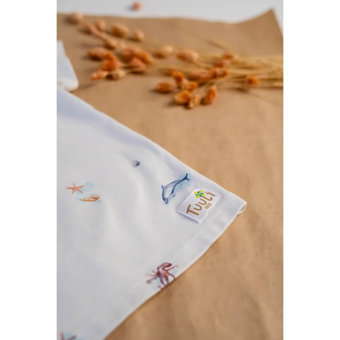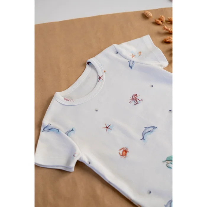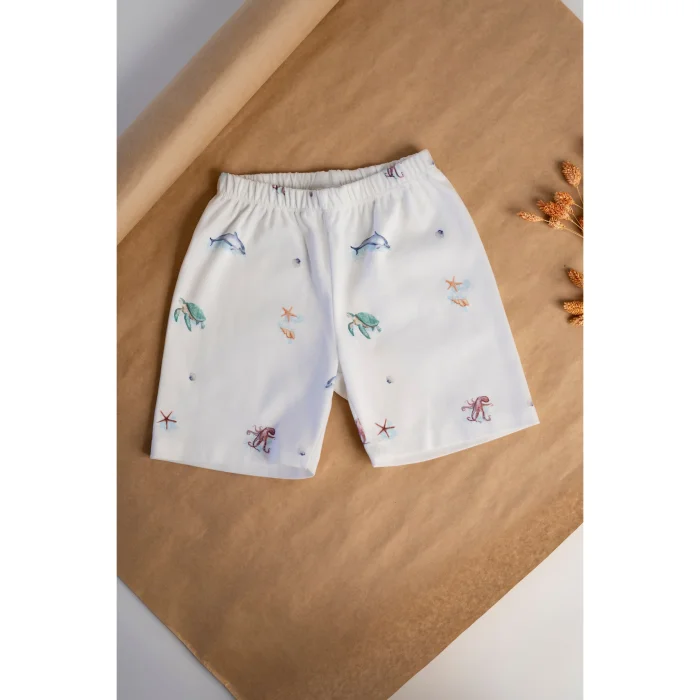 Shorts set made of 100% organic cotton with GOTS certified anti-allergic fabric. It offers elegance and comfort with its specially designed ocean patterns.