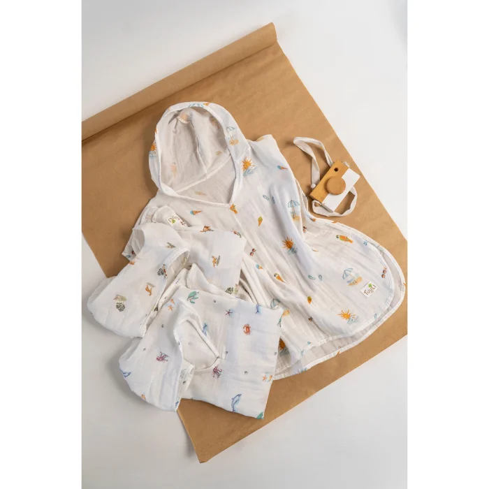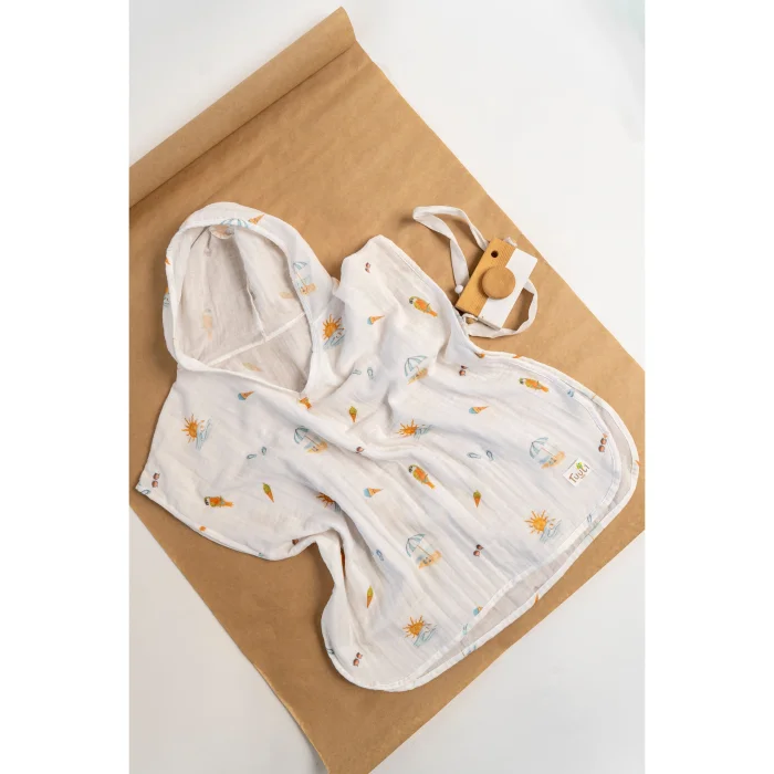 -It has an extra soft texture. The muslin poncho, which will get softer with each wash, will wrap your baby softly by the sea / pool, after baths and while playing in the garden.