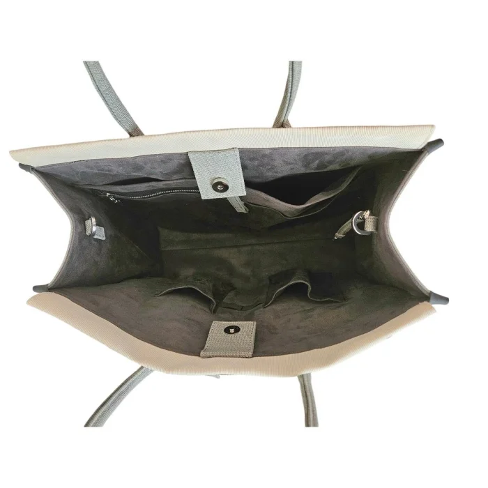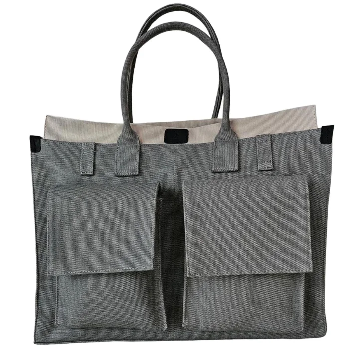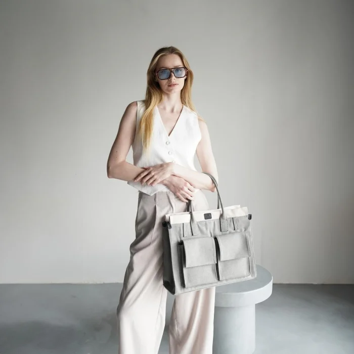 There are pockets of different sizes inside and outside, one of which is zippered, offering ease of use.