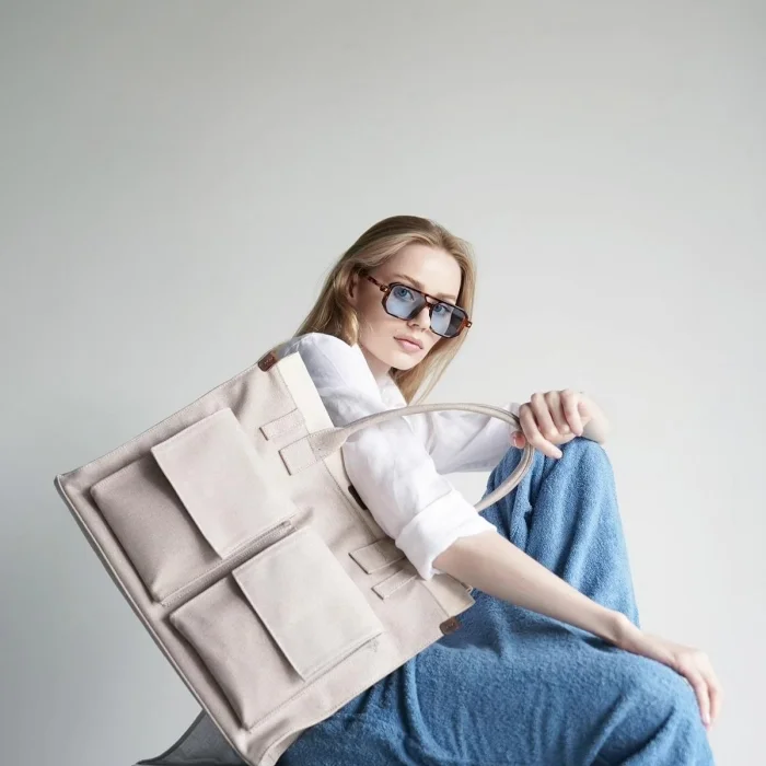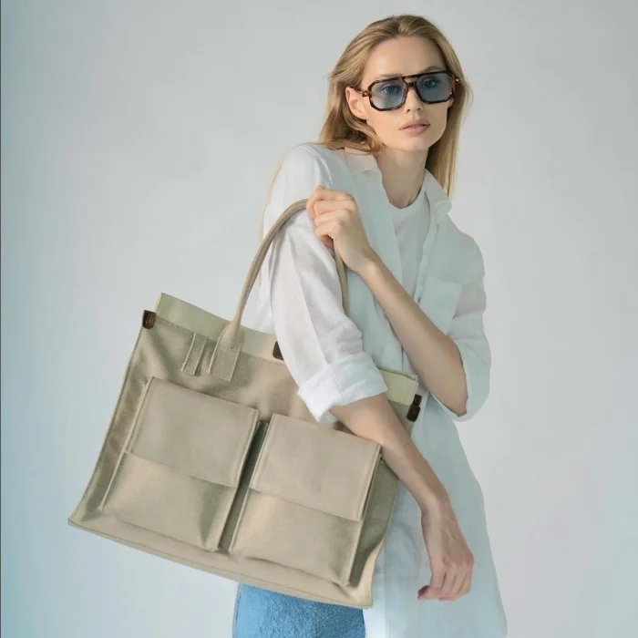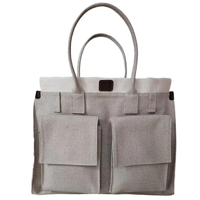 There are pockets of different sizes inside and outside, one of which is zippered, offering ease of use.