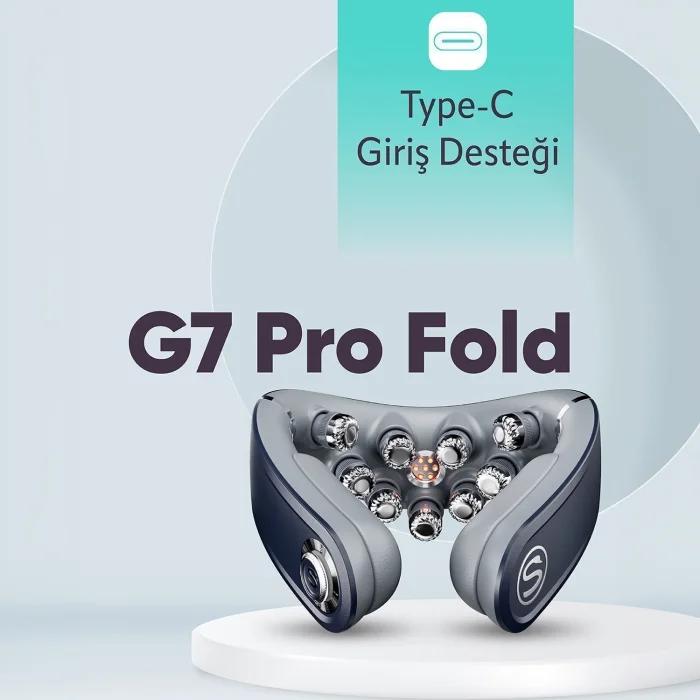 Features of SKG G7 PRO FOLD TENS-EMS Smart Neck Massager, Mobile APP support, Heat Therapy, TENS EMS Frequency Therapy, Infrared-Phototherapy, Electromagnetic Massage, 9-Head, Ergonomic, Modern Design, Type-C Rechargeable The stress and muscle aches of modern life can reduce the quality of daily life of most people. Developed to provide an effective solution to such problems, the SKG G7 PRO FOLD TENS-EMS Smart Neck Massager stands out with its advanced technology features. It offers an effective solution to neck pain with its mobile APP support, heat therapy, TENS EMS frequency therapy, infrared-phototherapy, electromagnetic massage, ergonomic and modern design with 9 heads. Offering a user-friendly experience with its Type-C charging feature, this device aims to increase your quality of life with the comfort and relaxation it provides. Important Features 1. Digital Modulation, Stable Pulse The G7 Pro-Fold uses digital frequency modulation technology to provide a stable and continuous pulse output. In this way, it provides a continuous and comfortable experience during the massage. SKG Pulse, Stable Waveform 2. Various Massage Options Each massage head has both pulse and vibration functions and is supplemented with heat therapy. These features allow the G7 Pro-Fold to offer a variety of massage experiences. Vibration and Pulse Massage Heads 3. Deep Muscle Relaxation with 6000Hz Medium Frequency By increasing the pulse rate, the medium frequency reaches the deep muscle layers and effectively relieves the root cause of neck ailments. 6000Hz medium frequency 4. Infrared Heat Therapy 7 ampoule infrared heat therapy with a wavelength of 650nm acts deep into the muscles with its pain-relieving properties. 650nm wavelength 7 bulbs 5. Triple Massage Technology Pulse, three massage technologies that can be activated simultaneously by vibration and heat compression, comprehensively relieve neck discomfort and provide a three-dimensional massage experience. Epidermal layer Fascia layer Superficial muscle layer Deep muscle layer Frequently Asked Questions 1. How does the SKG G7 PRO FOLD TENS-EMS Smart Neck Massager work? The device stimulates the muscles and provides relaxation by sending electrical pulses with TENS-EMS technology. It also offers an in-depth massage experience with heat therapy and vibration. 2. What areas is this massager suitable for? It is designed specifically for the neck area, but can also be used to provide relief in other parts of the body. 3. Does the device have mobile app support? Yes, the device has mobile application support. Thanks to this application, you can easily adjust the massage settings. 4. How long does the SKG G7 PRO FOLD take to charge? The device charges quickly with Type-C charging. A full charge time is approximately 2 hours. 5. How long is the battery life of the device? When fully charged, the device offers up to 10 hours of use time. 6. What is the temperature value of the device? The heat therapy function of the device provides a temperature between 38°C and 42°C. 7. What is the weight of the SKG G7 PRO FOLD? The weight of the device is approximately 350 grams. 8. What material is it made of? The device is made of high-quality ABS plastic and stainless steel. 9. What is the color of the device? The device is available in navy blue. 10. How long is the warranty period of the device? The SKG G7 PRO FOLD comes with a 2-year warranty. Technical Specifications Product Name: SKG G7 PRO FOLD TENS-EMS Smart Neck Massager Mobile APP Support: Yes Heat Therapy: 38°C - 42°C Frequency Therapy: TENS-EMS Infrared-Phototherapy: 650nm wavelength, 7 ampoules Massage Types: Electromagnetic massage, Pulse, Vibration, Heat compression Number of Titles: 9 Ergonomics: Ergonomic design Charging Type: Type-C Battery Life: 4 hours Charging Time: 2 hours Material: ABS plastic, stainless steel Weight: 350 grams This detailed review and features provide all the information you are looking for about the SKG G7 PRO FOLD TENS-EMS Smart Neck Massager. With the advanced technology and relaxation features provided by the device, you can effectively relieve your neck pain.