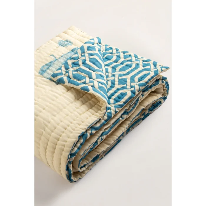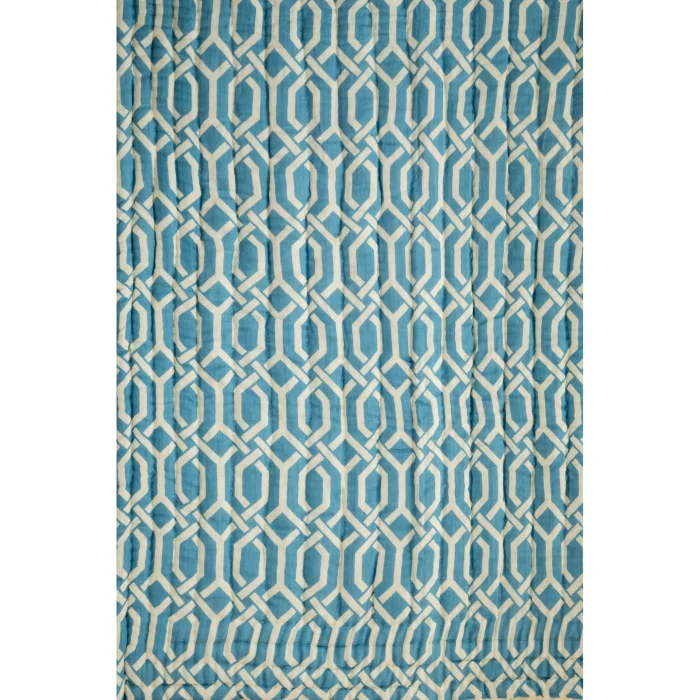 Product: Lotus Light Blue Patterned Organic Cotton Double Bedspread 220 X 240 Cm