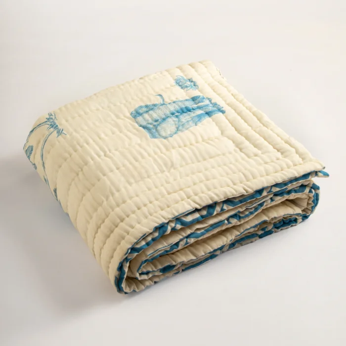 Suitable for all-season use Thanks to its special design, it can be used on both sides It is ultra-soft thanks to the special woven 100% cotton muslin fabric used on the outer surface Contains breathable natural cotton in the interlayer; Keeps warm in winter and cool in summer It can be used alone in summer and as an extra cover in winter Material: 100% organic cotton muslin fabric (GOTS certified) Packaging: Reusable cotton bag sleeve Sustainability: Label with phacelia seeds Care: Dry cleaning recommended Package Includes: 1 piece of bedspread and storage cover Size: 220 x 240 cm (Manual measurement may vary as the products are hand-stitched)