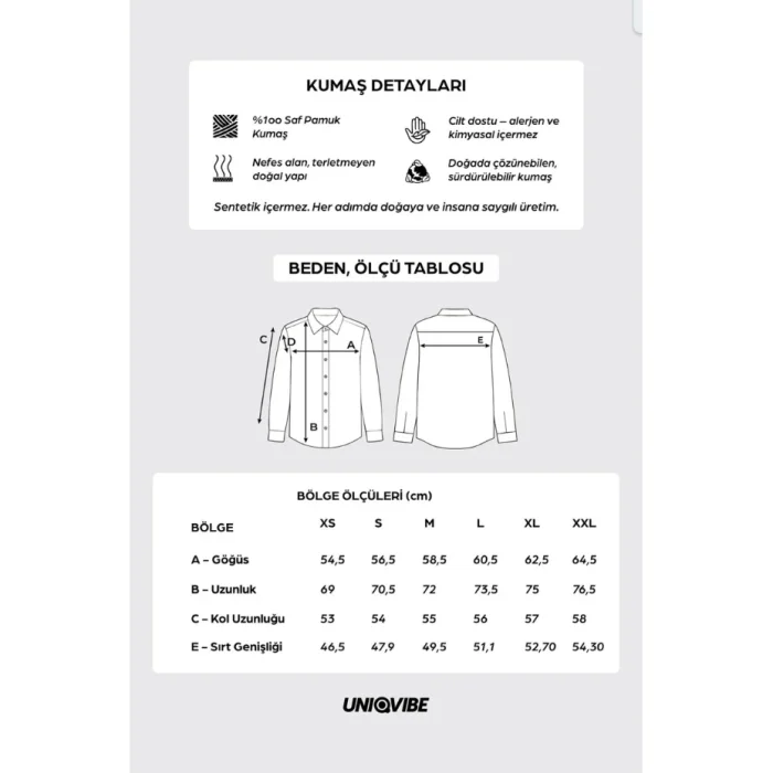 It is designed for you to experience elegance and comfort together at every moment. The 100% cotton long-sleeved striped women's shirt offers comfort all day long with its breathable structure. Thanks to its natural texture, you can choose a style that is both stylish and sustainable. While reflecting the energy of nature in your style, make a difference with your environmentally friendly choices. A timeless piece for both everyday wear and special moments. Care Instructions: Machine wash on low heat with similar colors. Use only chlorine-free bleach if necessary. Do not tumble dry, iron inside out. Keep away from fire.
