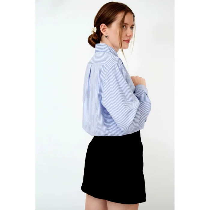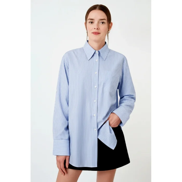 It is designed for you to experience elegance and comfort together at every moment. The 100% cotton long-sleeved striped women's shirt offers comfort all day long with its breathable structure. Thanks to its natural texture, you can choose a style that is both stylish and sustainable. While reflecting the energy of nature in your style, make a difference with your environmentally friendly choices. A timeless piece for both everyday wear and special moments. Care Instructions: Machine wash on low heat with similar colors. Use only chlorine-free bleach if necessary. Do not tumble dry, iron inside out. Keep away from fire.
