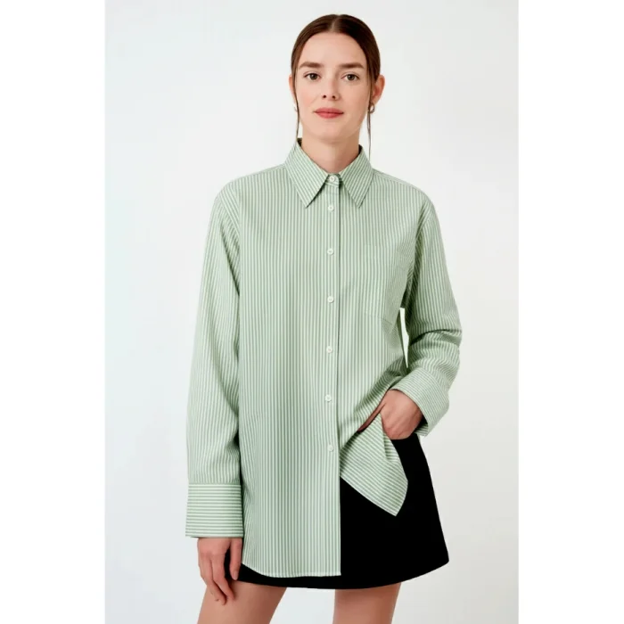 It is designed for you to experience elegance and comfort together at every moment. The 100% cotton long-sleeved striped women's shirt offers comfort all day long with its breathable structure. Thanks to its natural texture, you can choose a style that is both stylish and sustainable. While reflecting the energy of nature in your style, make a difference with your environmentally friendly choices. A timeless piece for both everyday wear and special moments. Care Instructions: Machine wash on low heat with similar colors. Use only chlorine-free bleach if necessary. Do not tumble dry, iron inside out. Keep away from fire.