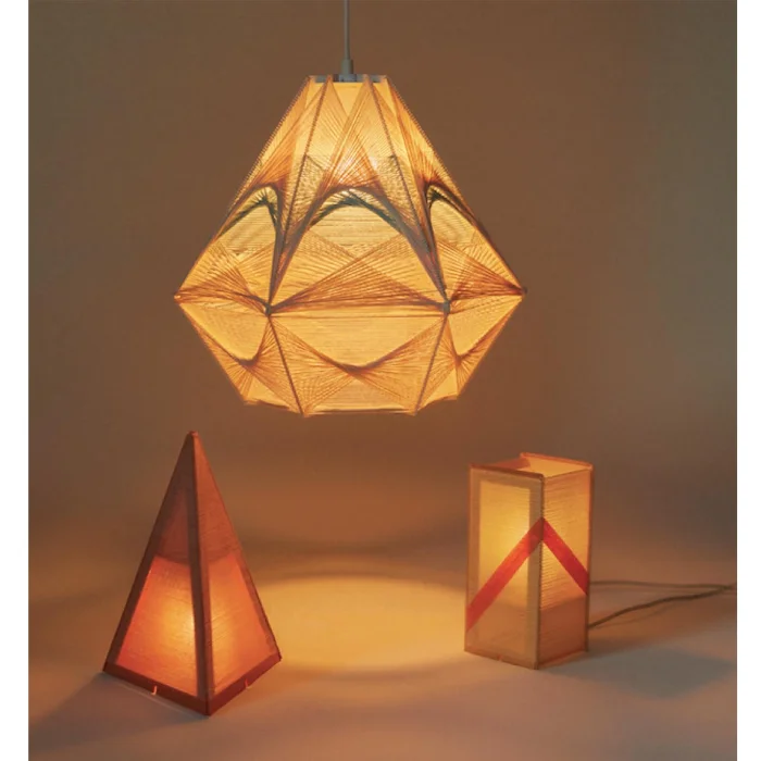 Handcrafted string art lamps.
