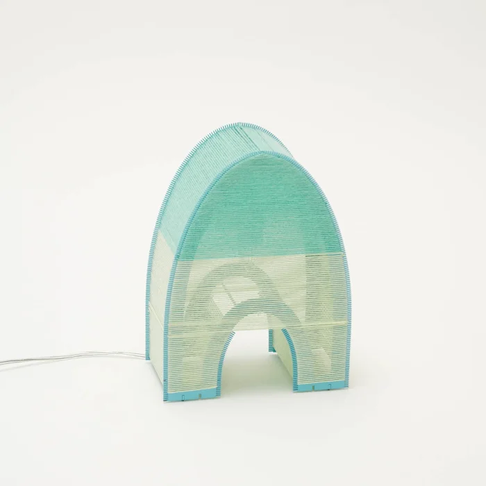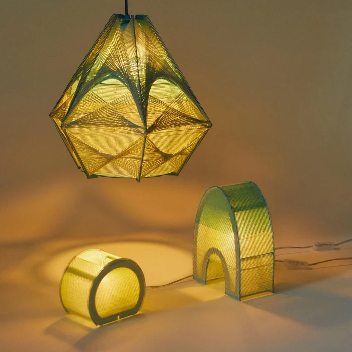 Handcrafted string art lamps.