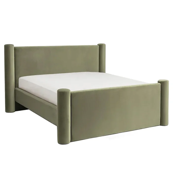 Pofy Bed Frame has been specially produced for you in a modern and simple line with velvet fabric on a solid beech frame.  HANDMADE: Handmade, carefully prepared for you in skillful hands. USAGE IDEAS:  You can contact us for your special size and color requests. The price does not include the bed. DELIVERY: Product delivery time is 6 weeks. This date may vary for special production products.
