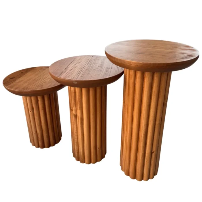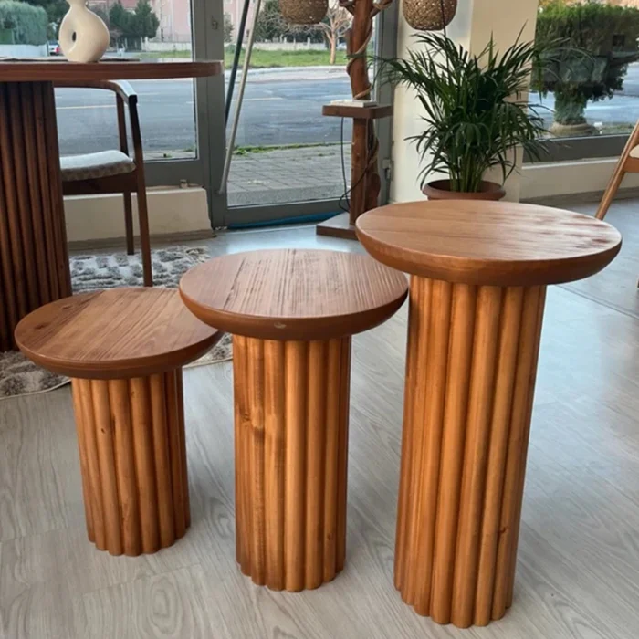 Our natural solid 3 cork coffee tables have been carefully prepared for you by our masters. It is sold as a set. MATERIAL: Linden wood DIMENSION: Small: 39 cm high, 34 cm diameter Medium: 49 cm height, 34 cm diameter Large: 59 cm high, 34 cm diameter DELIVERY: Product delivery time is 5 weeks. This date may vary for special production products.