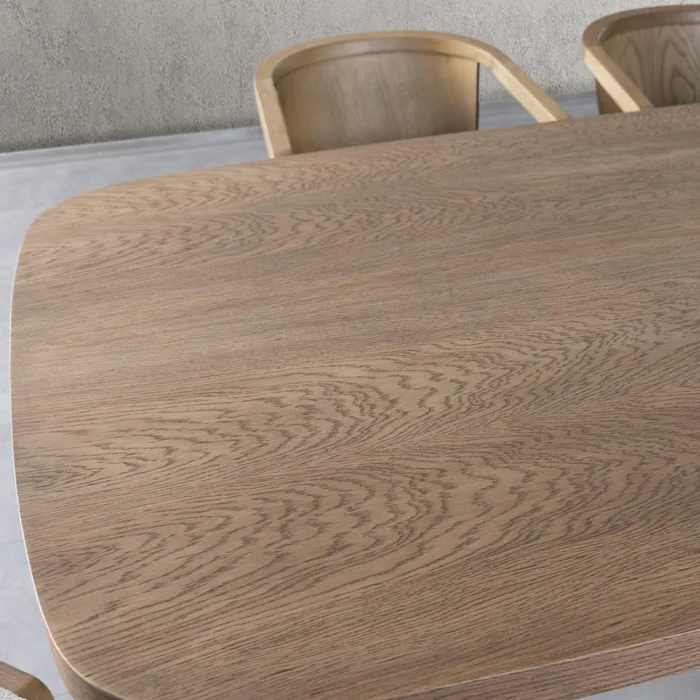 The Vicky Table is a piece that stands out for its handmade and minimalist design. A functional and stylish option, the table adds a touch of simple luxury to any living space, while providing a feeling of comfort and tranquility. MATERIAL: Oak Wood-Travertine veneer SIZE: Width: 120 cm Depth: 120 cm Height: 77 cm DELIVERY: Product delivery time is 5 weeks. This date may vary for special production products.