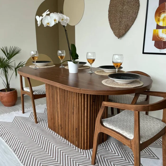 Our craftsmen have carefully produced the Wicked Wooden Oval table, which is an example of the favorite designs of the Japandi movement, which is a combination of Scandinavian functionality and Japanese rustic minimalism that creates a feeling of nature and simplicity.