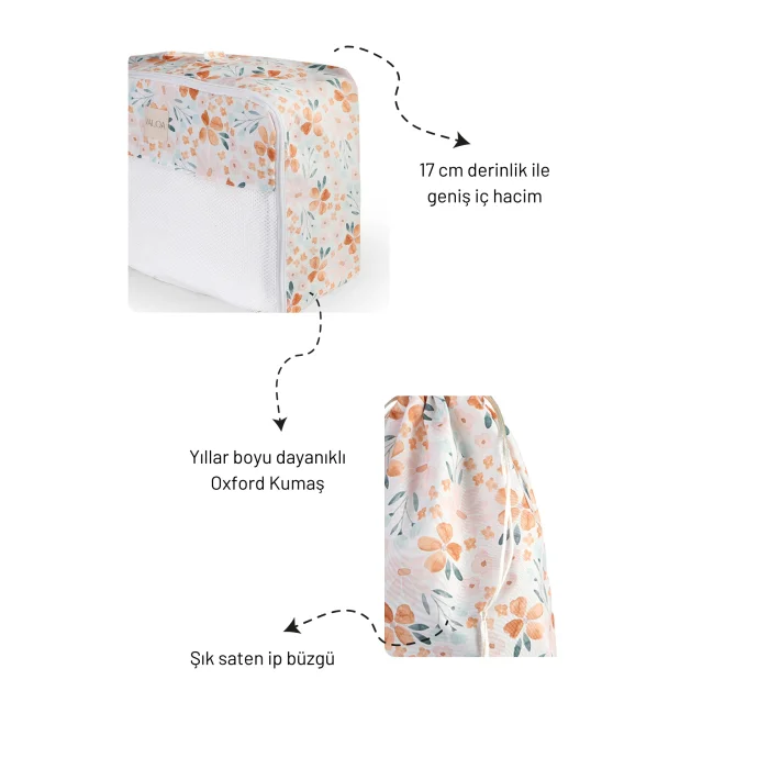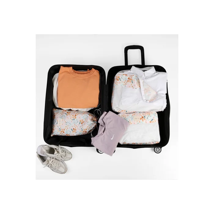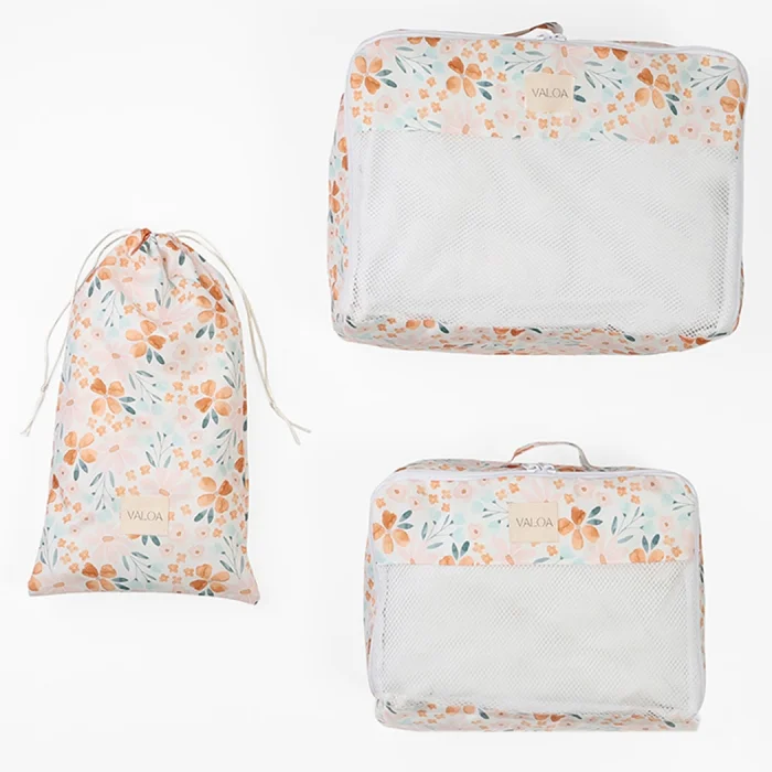Durable oxford fabric meets eye-catching, stylish patterns. It has been designed and produced❤️ with special love for those who want the inside of the suitcase to be tidy but not to lose its beauty With the Bloom suitcase organizer set, your suitcases will be both organized and flower-garden-like!